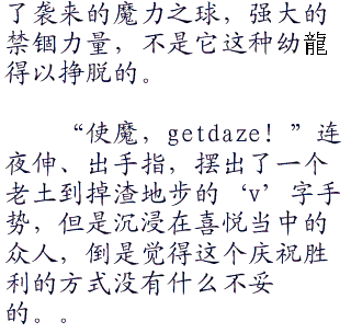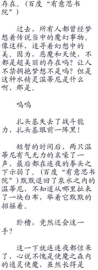 这种情况之下,就不能搞点更魔幻一点的打斗吗?就没有精灵魔法这东西吗?两只魔幻的水精灵之间的对战,结果是拳头对拳头、身♂体对身♂体兄贵般的互殴,这实在是太过破坏人的幻想了,眼前的这一幕,简直比起幻想杀手还要来得可怕啊!