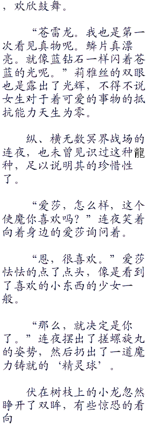 “怎么样?水精灵温蒂尼不错吧,刚好有两只,你们两个一人一个刚刚好不是吗?”扎头基还不忘着推荐道,“毕竟,这是力量说话的世界呢!这样子的使魔还是很有用的!”