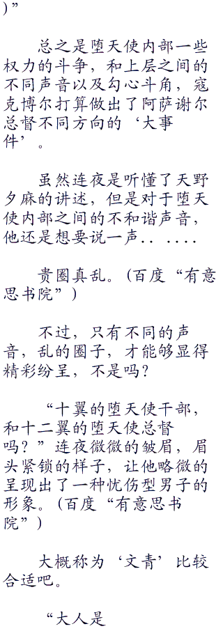 虽然因为过去长时间养下来的习惯的缘故,天野夕麻依旧会不自觉的把诸位堕天使的干部,亦或是总督称呼为‘大人“零零零”’,但是,毫无疑问的是,现在在堕天使的心中,没有人的地位能够凌驾于连夜之上,即使是有着十二片黑色羽翼的堕天使总督阿萨谢尔也是。