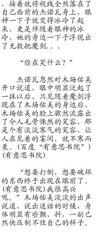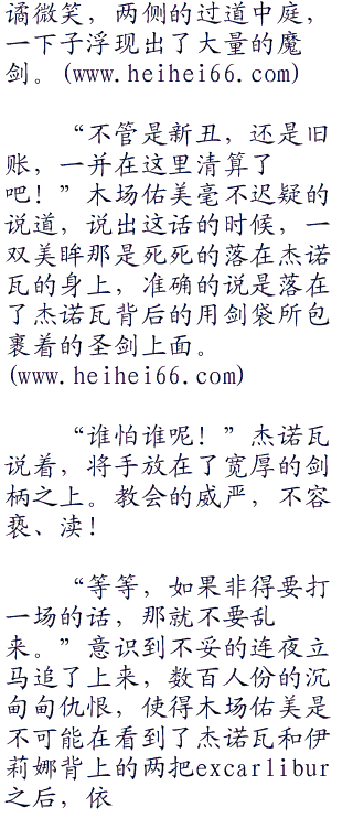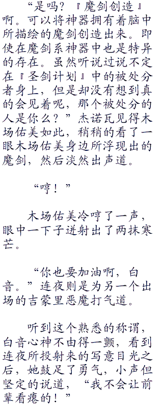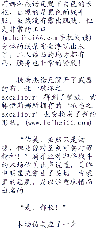 “木场佑美,吉蒙里所属的‘骑士’,而在从前则是你们的前辈,虽然是作为圣剑计划失败品呢。”答话的瞬间,无数把狰狞的魔剑出现在部室之中。