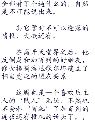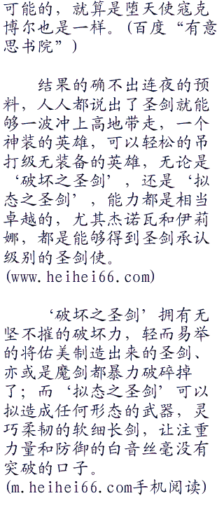 当然,具体恶魔之力和圣光之力的倾轧,结果如何,就要看两边力量的等级差距了。虽然拿着强大的excarlibur,杰诺瓦和伊莉娜要打败萨泽克斯这样子的魔王也是不