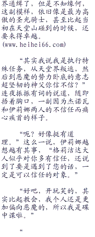 似乎察觉到不妥,这毕竟是恶魔的地盘,伊莉娜赶忙停下自己的动作,然后吐了吐舌头,可爱的笑着道歉。