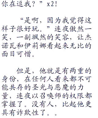 “真是麻烦的家伙。”连夜扶着额,一副头疼的样子。虽然曾经也打通了关节,前往了教会,但是这种繁琐无趣的生活方式,他的确从未学习过。