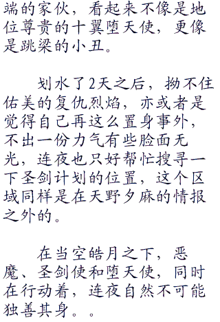 而连夜自然是优哉游哉,这两天对于他来说,不过是多了两名圣剑使的两天罢了。