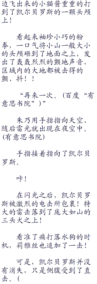 其中一个头对着从空中飞来的莉雅丝,吐出了一道炽热的火焰!真的是怪兽,来自于冥府守门之地的恶犬。