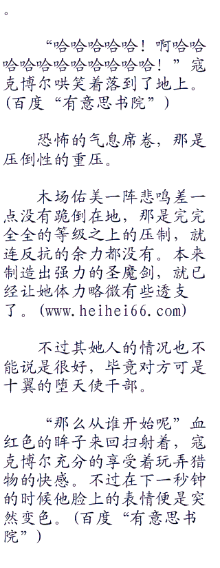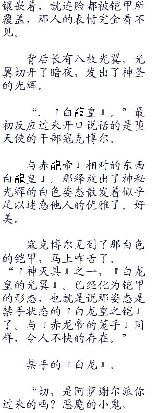 “怎么会这样!?超展开啊!混蛋!这样的设定根本就不需要!”菲利德大叫起来,朝杰诺瓦释放出杀气。同时眼睛看不见的,产生了分支的透明圣剑也向她攻了过去。