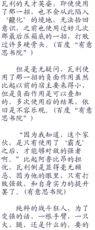 虽然身体遭受了重创,但战意却丝毫不减,即使对着天堑鸿沟一般差距的强者,瓦利的战意反倒是沸腾不已。
