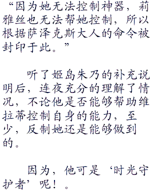 “啊啦啊啦。封印已经解开了哦。已经可以到外面去了。好了,和我们一起出去吧。”