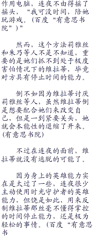 不过,不同于以前对付时间停止的困窘,现在的连夜对于时间的力量,实在是在熟悉不过了,仅仅是瞬间的功夫,就足以反制下维拉蒂的停止时间能力了。