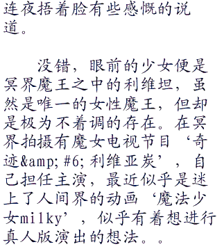 “啊,只是有些可惜呢,本来想见一见天界著名的第一美女加百列呢。”连夜扼腕叹息,一脸惋惜的表情。“要不见一见她秘书格莉洁达也行。”
