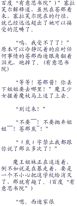 “苍那酱,怎么了?脸好红哦?难得与身为姐姐的我再会,我觉得更高兴一点也是可以的哦?”塞拉芙尔倒是丝毫不觉得尴尬的在苍那耳旁念叨着,“姐姐我啊,觉得在这里出现喊着『姐姐大人!』『苍那酱!』互相拥抱的百合展开也是可以的哦!”