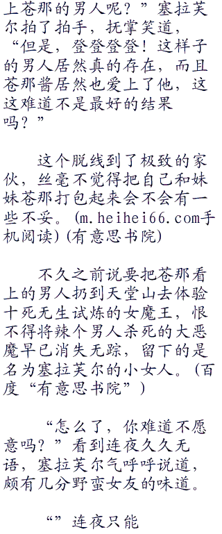 连夜捏了捏下巴,尝试安抚一下塞拉芙尔的脾气,“对此,,我很抱歉。”