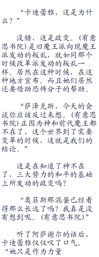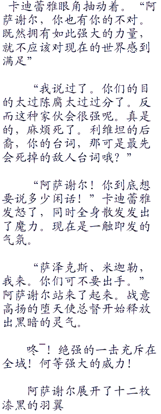 “也就是说要正式和新魔王阵营开战了呢。恶魔的内部也真是不容易啊。”阿萨谢尔只是笑着围观而已。