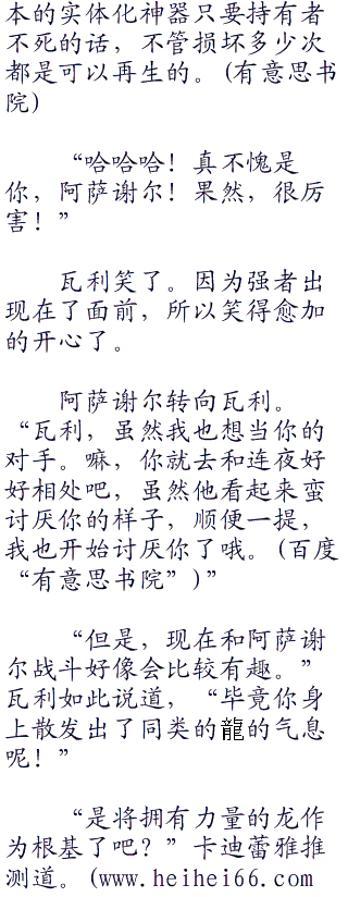 阿萨谢尔得意的笑了笑后,马上叹了口气。“听了你的话之后我觉得你们的目的越来越让我作呕了。瓦尔哈拉!?阿萨神族!?如果合不来的话你是打算把奥丁都消灭吗?在此之前,想要夺走我的乐趣的家伙只有死路一条。”