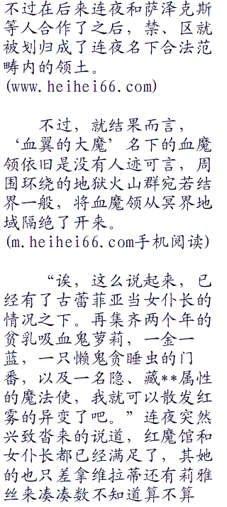 其实,原本那一片领土只是被连夜以武力强占了旧恶魔领而已,因为几乎排斥任何人的‘血翼的大魔’威名赫赫的缘故,成为了一片冥界禁、区,