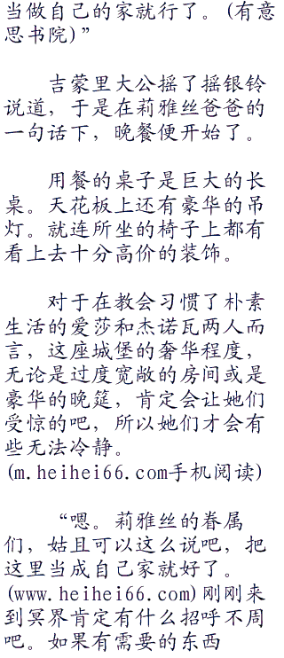 数小时后,一众人现在正位于餐厅,欧洲中世纪设计的典雅大堂,长长的方桌,以及四周点起来灯火通明的蜡烛,碟子上放满了量多得绝对吃不完的豪华食物,不管哪一道看上去都非常的美味的样子!