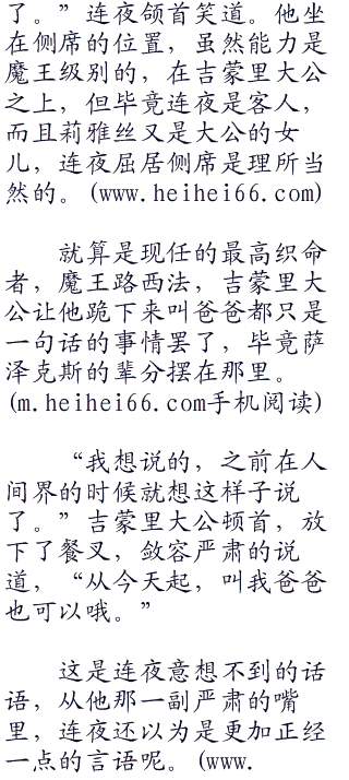 按照传统的礼仪,就算连夜的性情一向是极为的不拘一格,这个时候也应该是让作为主人和长辈的吉蒙里大公先行动筷子。所以当杰诺瓦兴冲冲的想要动筷子的时候,愣是被连夜伸、出筷子连续好几次格挡了下来。