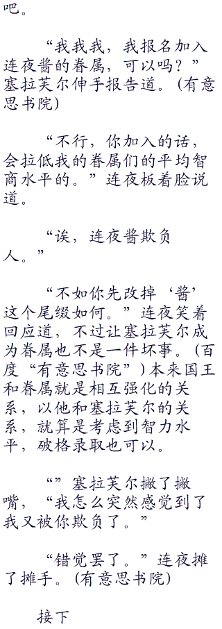 “那还是算了。”塞拉芙尔假笑着,以开玩笑为由逃开了连夜的buff