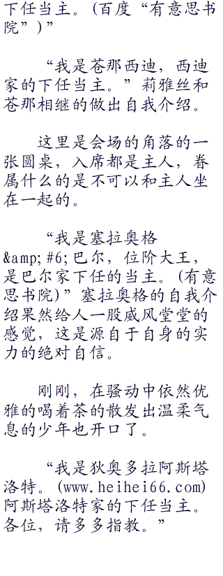 “我是西格拜拉&a;a;#6;阿加雷斯。位阶大公,是阿加雷斯家的下任当主。”戴着眼镜的冷艳少女,阿加雷斯家的大小姐率先开口,在向众人打着招呼。“很感谢各位帮忙解围的举动,阿斯莫德家的下任当主,实在是欺人太甚了。”