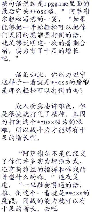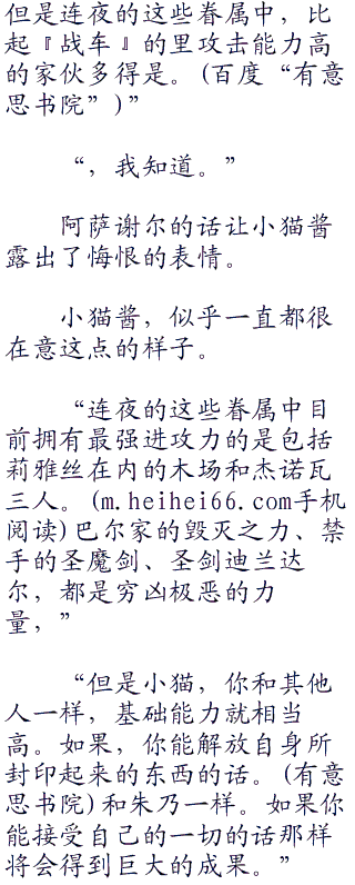 “没错。爱莎所拥有的可以治愈恶魔的神器是这个队伍特有的,就算说是武器也不为过。剩下的就看爱莎的体力了。要好好进行基础训练哦。”