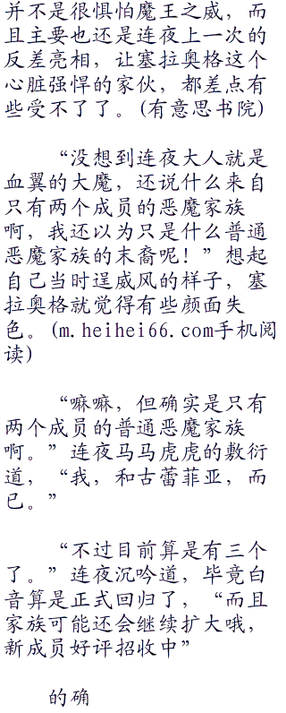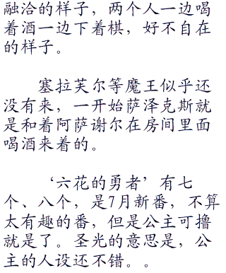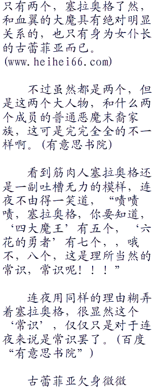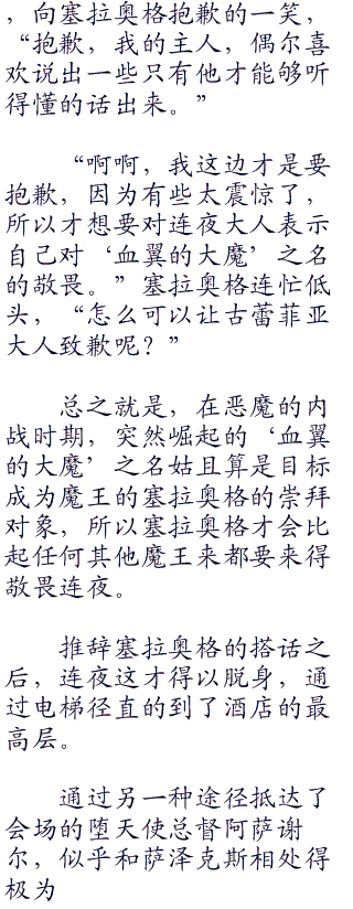 “不不不,听上一次参加年轻恶魔聚会的恶魔们说,那位大人并没有那么的冷血无情。相反的,和萨泽克斯大人一样是极为和善有为的魔王呢!”
