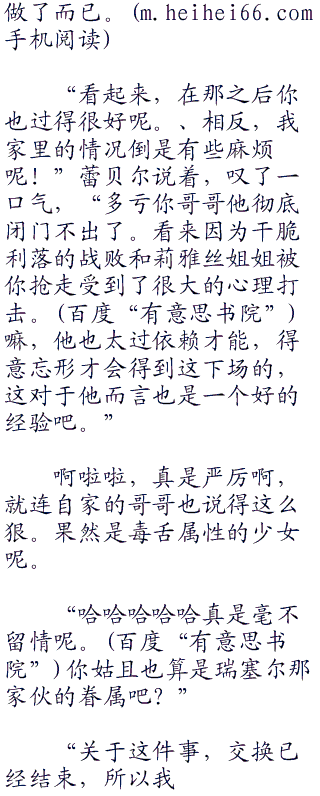 被针对了菲尼克斯家族最讨厌的火鸡、烧鸡称号之后,蕾贝尔差点就跳脚了。“你你你你,你怎么可以这样,走路不看路,一定是故意撞上我的把。”