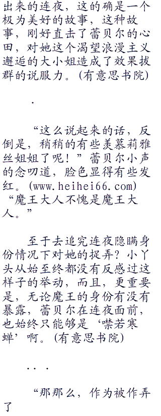 特别是在那一次,卓越的年轻恶魔聚会之后,连夜的真实身份,也就伴随着一次魔音动人演讲而揭晓了。