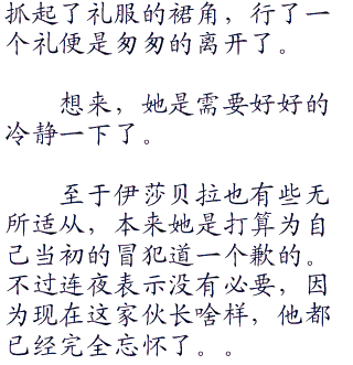 “蕾贝尔。老爷的朋友叫你了。”伊莎贝拉,有些头疼于蕾贝尔的乱来行径,终于发现她的时候先是心头一喜。