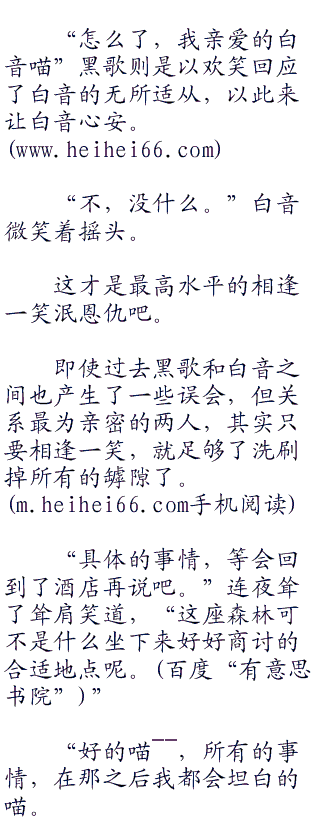 “姐姐,”白音不知道应该如何言语,只是呆滞的看着黑歌。