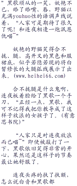 不管什么时候,面对什么样的事情,都是连夜先挡在前面,然后就是黑歌这个姐姐,让离开了两人的白音瞬间就无所适从了。