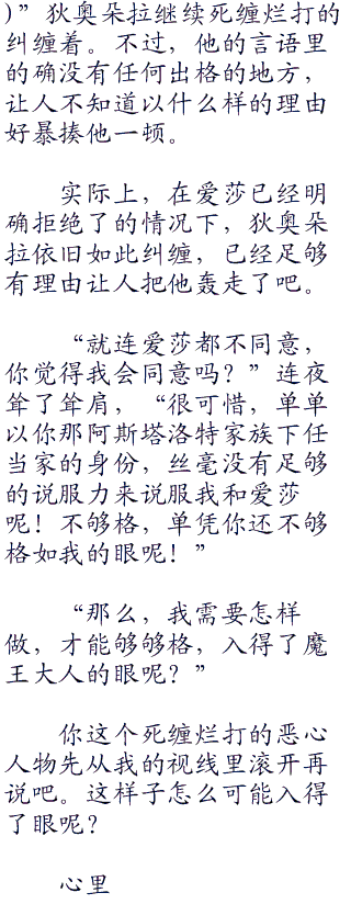 “终于是赶上了,爱莎&a;a;#6;阿尔杰特小姐。总算见到你了。”眯着眼笑着的男性恶魔感慨的说着。这个自顾的说法是怎么一回事,这下糟糕了!是变态吗?休想碰我家的爱莎酱一根头发!