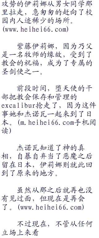 没错,她是夏天前因为excalibur抢夺事件和杰诺瓦一起来到日本的紫藤伊莉娜,教会圣剑使之一!