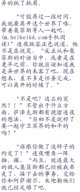 在奥菲斯确定会跟随着连夜之后,萨泽克斯特意来多说了三两句话。