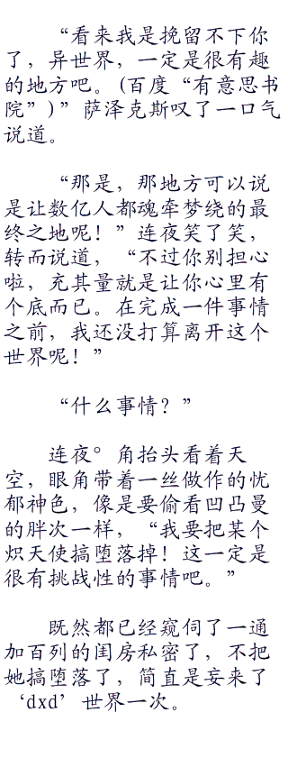 这个世界上,自然是没有一个人够格将奥菲斯转化为眷属吧,不过连夜也没有非得要将奥菲斯转化为眷属作为战斗力单位之一的想法,让大名鼎鼎的无限龍
