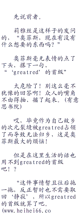 古蕾菲亚看着奥菲斯的生活状况,然后对连夜说道。
