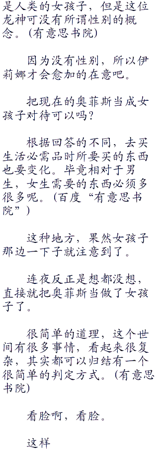 大家的视线都集中到了伊莉娜的身上,她咳嗽一下再次向奥菲斯问道,“奥菲斯小姐是不是女孩子呢?”