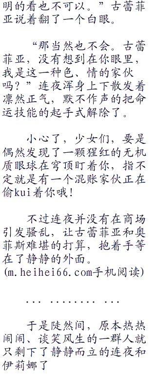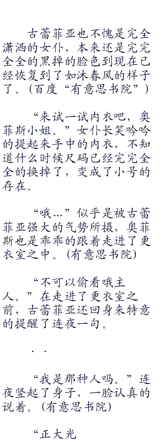 “奥菲斯,你想要什么样的内衣呢?”古蕾菲亚发出问题。
