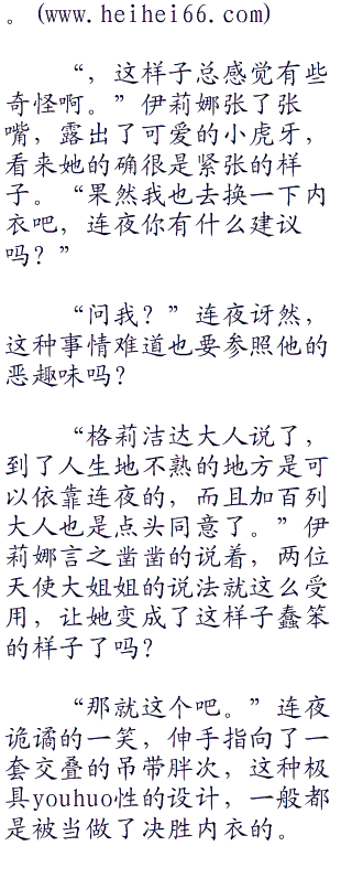 “别、别问我啊!我可是基督教徒!内衣当然要纯白色的!”伊莉娜先是对这个话题感到慌乱,然后明确的说道。