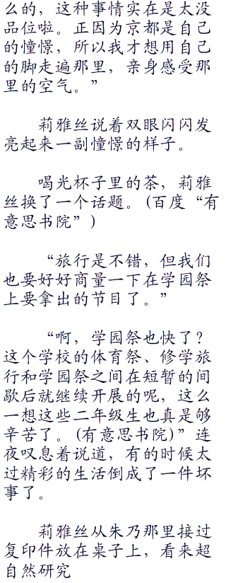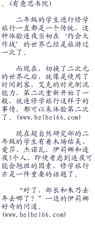 临近下课的时候,连夜在超自然部里一边优哉游哉品茶一边聊着修学旅行的话题。