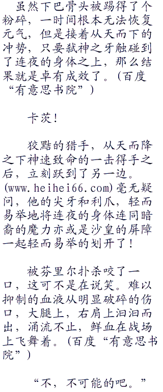 从天而降的攻击,应该是没有理由有谁能够这个时候攻击的才对,但,正因为对于被踢碎了的下巴芬里尔狼懈怠了的缘故,导致了连夜一段时间内忽视了芬里尔继续攻击的可能性。