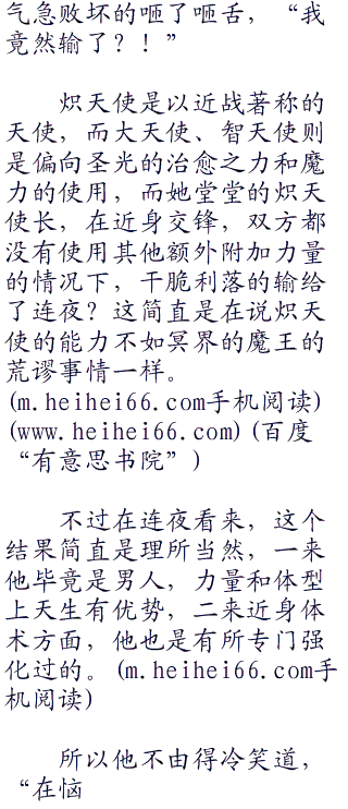 所以在这条人烟已然稀少了的绿色小径之上,当恼羞成怒的炽天使长以矫健的战斗姿态扑过来的时候,连夜就毫无反抗之力的被、推倒了,当然是逆推。