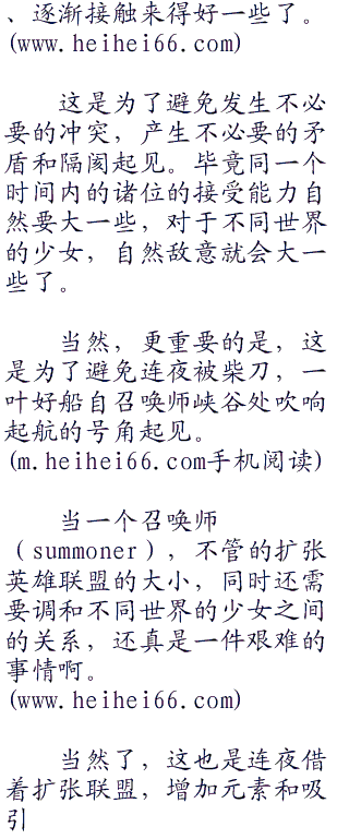 之所以不让这片空间内的其她诸位知道‘恶魔高校’世界的一众少女的存在,并非在于连夜的做贼心虚,而是不管少女们的宽容心和忍耐力已经被连夜的几番行为打磨得多么的优秀了,但是接受一些新加入召唤师峡谷的世界成员,特别还是特定为和连夜的关系还很不错的少女的情况下,自然还是缓慢沟通