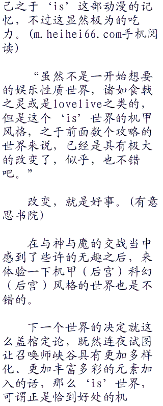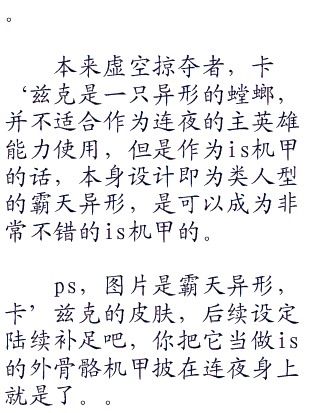 只要增加了翅膀的可飞行,亦或是浮游能力的话,这些合金装备完全可以胜任is(infinitestratos)的暂定太空机甲设备。