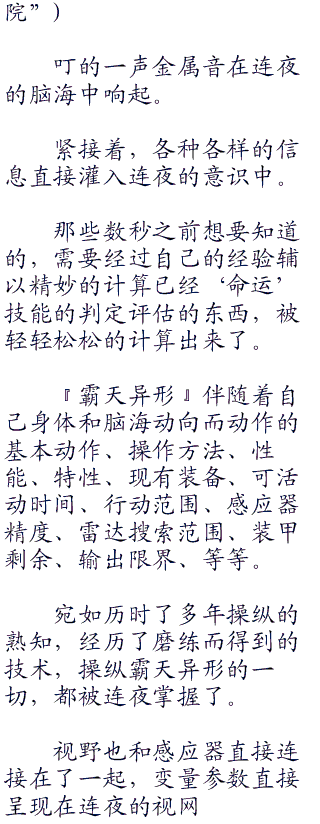 选定一项更加适合用以战斗,并且攻略‘is’世界的机甲的话,比起任何其他的‘霸天’系列,‘战地机甲’系列,‘合金装备’系列以及‘全金属狂潮’系列、‘钢铁之翼’系列的英雄能力来说。