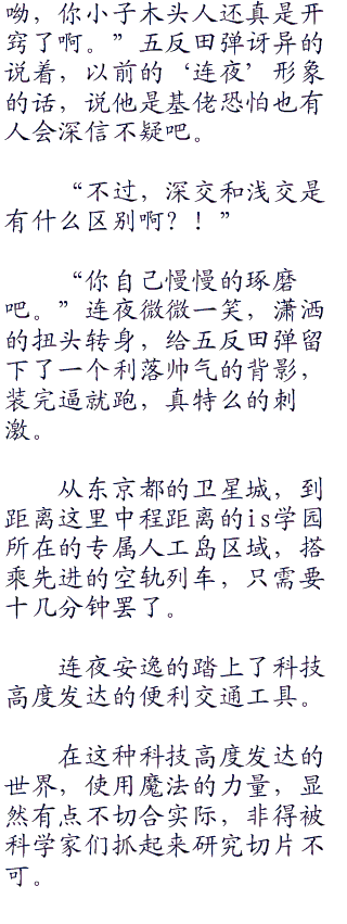在整个暑假待机的时间里,连夜跟五反田弹或多或少还有继续接触几次。因为从小学至国中,都是跟一个木头人一般的织斑一夏并没有太多的朋友。