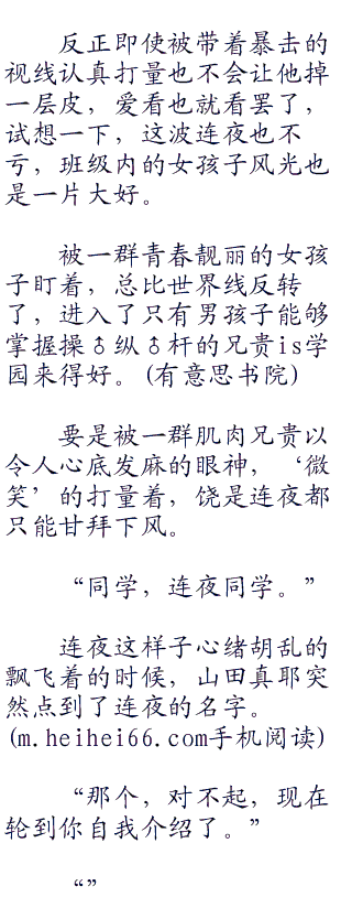 “那么大家,在一年的时间里要好好相处哟。”山田真耶用尽量活泼的语气,打算活跃一下班级内的气氛。