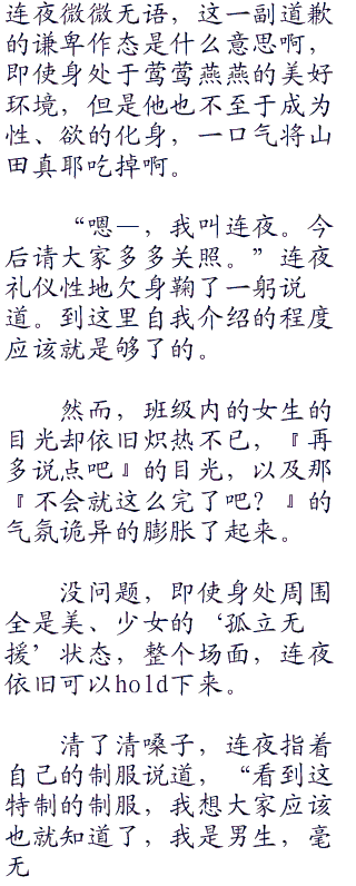 “那、那么,请各位先做下自我介绍。嗯,按座号来。”