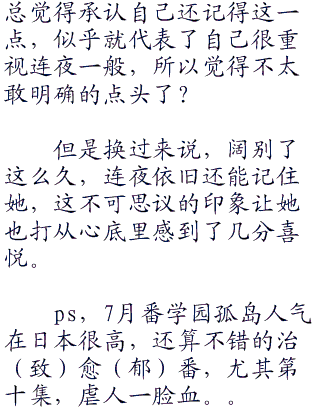 如果说被僵尸的危机所包围着的学校被称作了‘学园孤岛’的话,那么连夜现在则是身处在被女性所包围的‘女性孤岛’之上。