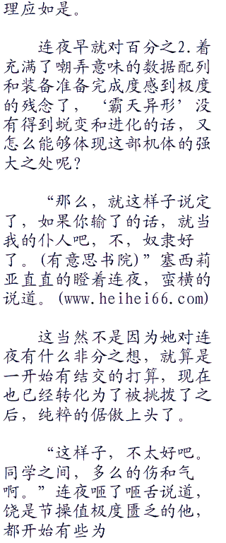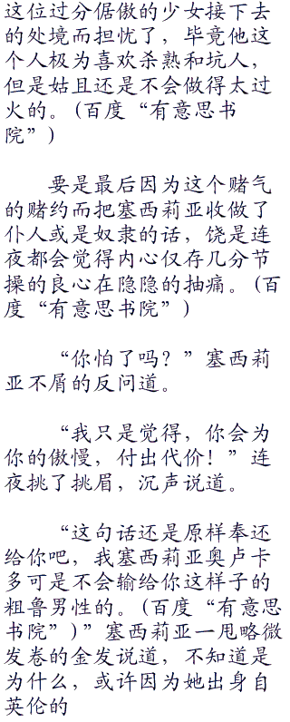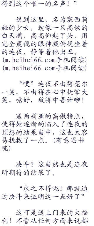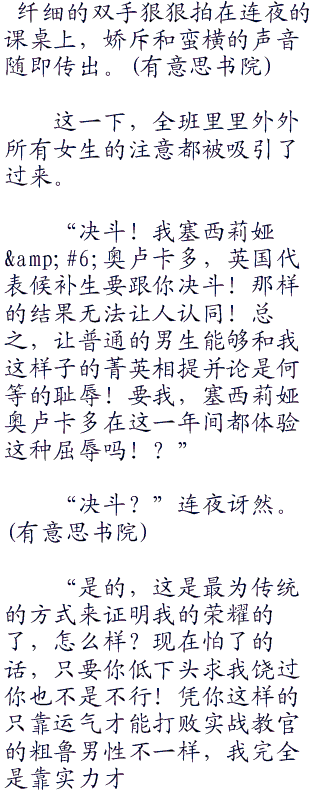 虽然连夜觉得自己是一本正经的在说着实话,但是对于如此轻视塞西莉亚的菁英能力,自然让过分高傲的金发少女有些受不鸟了