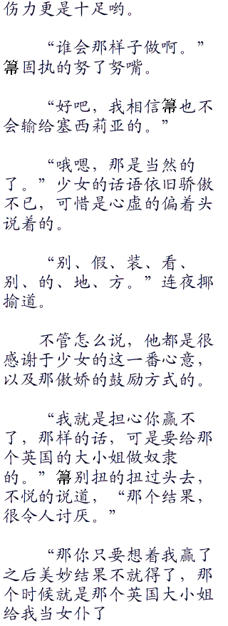 “那么我呢?算、算了。由谁来当这个班级代表最合适这件事,别忘了我,塞西莉娅奥卢卡多就好!”塞西莉亚用右手将头发一下子扬起,右转,然后就这么昂着头离开了。
